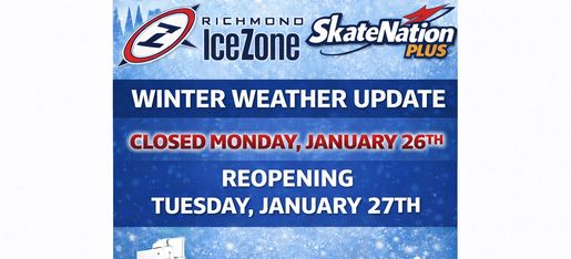We will remain closed today, Monday January 26th and plan on reopening tomorrow Tuesday January 27th with a delayed opening at each of the rinks. Additional Public Skating sessions will be added as schools remain closed this week.